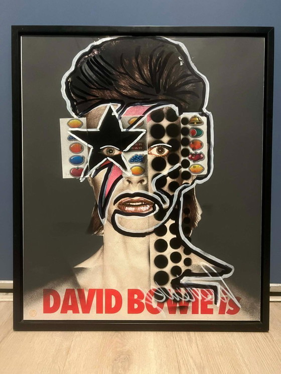 Mixed Media Art on an existing billboard poster of British singer David Bowie by Liedewey, born in Zandvoort.