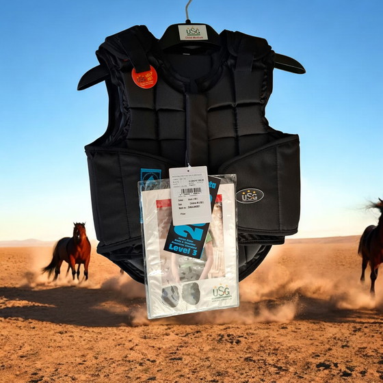 For sale: A brand new USG Flexi Kids body protector in black. This safety vest has never been worn and still has all the original tags attached (original retail price €129.95).