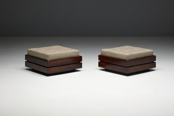 Celina Decorações, based in Rio de Janeiro and active from the 1950s to the 1980s, was among the key forces that shaped Brazilian modernist furniture. Founded by Celina Zilberberg and later expanded by her son Munis, the company became known for its commitment to artisanal craftsmanship, quality materials, and elegant functionalism. By the 1960s, it had gained national recognition and international reach, offering refined pieces that balanced industrial production with handmade attention to detail - as exemplified in these elegant rosewood ottomans.