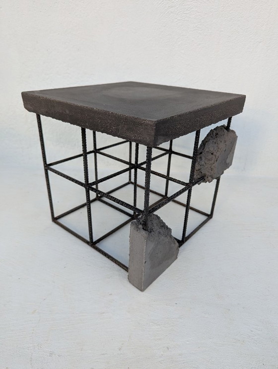 Discover the raw power and aesthetic of brutalism with this sculptural table by Wallavibe Design. Handcrafted, this unique piece fuses waterproof concrete with oxidized iron, creating functional art that stands out in any setting.