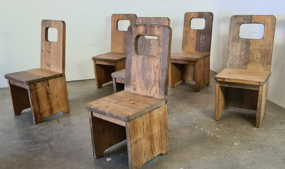 These Brutalist dining chairs offer a bold and striking look, with a focus on minimalism and functionality. Sturdy construction ensures durability, while the rugged, industrial look adds a modern touch to your living space. With clean lines and geometric shapes, these chairs are both aesthetically pleasing and ergonomic. Perfect for homes with a contemporary decorating style, they add character and style to any room. The use of wood materials creates a sense of warmth and naturalness. If you are looking for a strong artistic look for your interior, these chairs are the ideal choice.