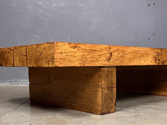 Embrace the raw beauty of this Brutalist Japandi Wabi Sabi coffee table, a stunning piece that brings nature's artistry into your living space. Crafted from solid wood, this table showcases a rich brown hue that highlights the natural grain and texture, making each piece unique.