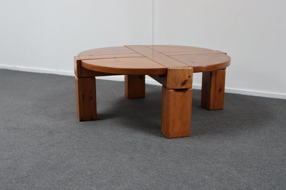A compelling example of brutalist design from 1970s Sweden, this solid pine coffee table exudes a raw, unapologetic material presence.