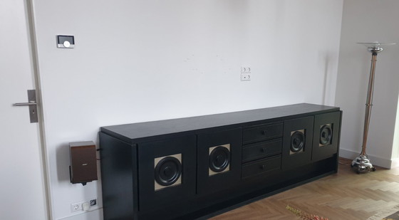 Bring a touch of vintage charm into your home with this impressive Brutalist sideboard in the De Coene style from the 1970s. Crafted in Belgium, this piece of furniture combines robustness with a playful twist thanks to the interchangeable colored panels.