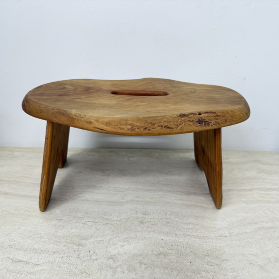 Brutalist Solid Wood Side Table/Stool, 1970s