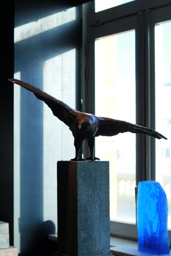 Introducing "Buizerd" by the esteemed artist Arvid Henkes, a captivating bronze sculpture that embodies the grace and majesty of a bird in flight. This exquisite piece is a testament to Henkes' mastery in capturing the essence of nature through art.