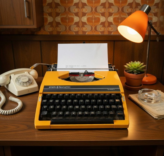 Looking for a sunny, eye-catching typewriter with a pure 70s vibe? This canary yellow Sperry Remington Ten Forty is a real showstopper! With its bright canary yellow casing and black keys, this classic radiates nostalgia and cheerful retro energy. Perfect for actually typing or as a stylish decorative piece in your vintage interior or home office.