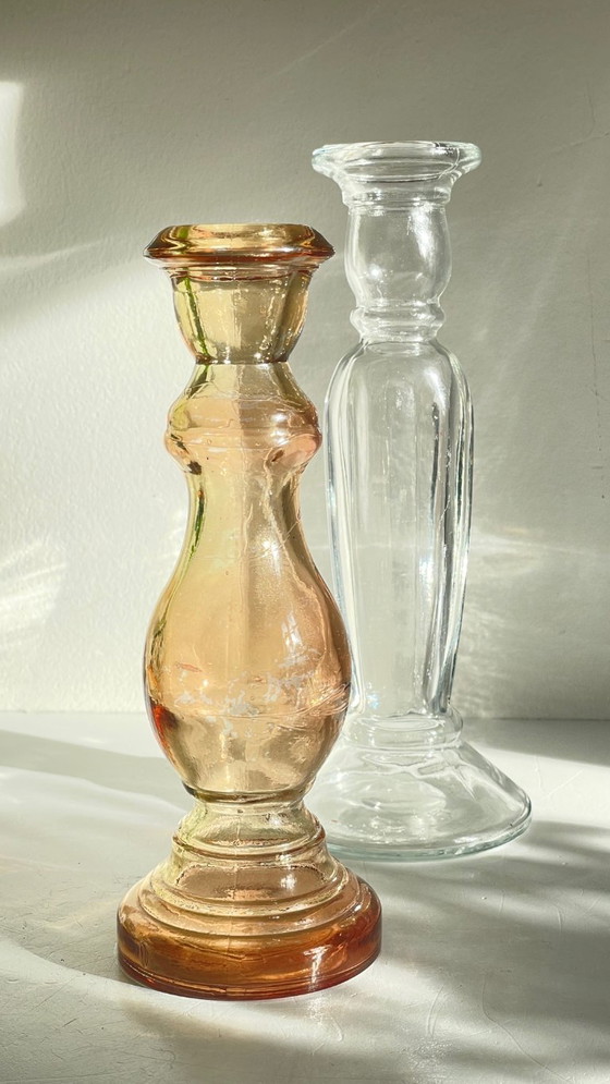 Beautiful pair of clear glass candlesticks, a chic and poetic set... ideal for a festive table, inspired décor, and our beautiful, inspired evenings.