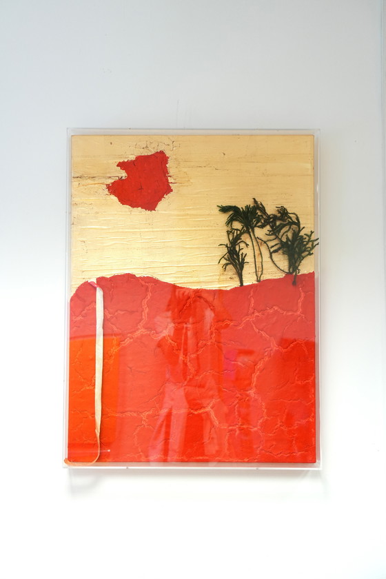 Step into the vibrant world of 1980s Italian contemporary art with this stunning and evocative mixed-media piece by acclaimed Friulian artist Guido Coletti. More than just a painting, this is a meticulously crafted shadow box, a "closed window" into Coletti's unique artistic vision, preserved under Plexiglass. Its bold colors, intriguing textures, and layered composition make it an undeniable statement piece, ready to elevate any discerning collector's space.