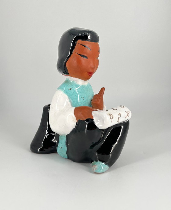 The figurative, Asian-inspired design is characteristic of Austrian post-war ceramics and makes this piece a sought-after collector’s item.