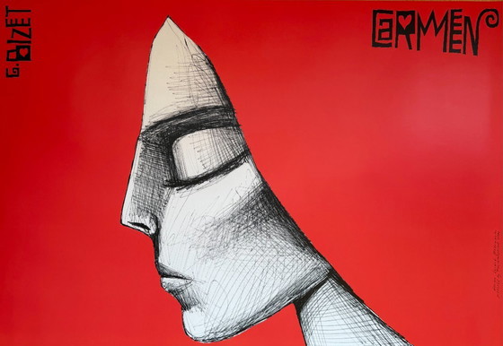 Original poster for Carmen by Georges Bizet, designed by L. Zebrowsk. This poster is a strong example of great opera poster design, combining expressive graphic language with the dramatic character of Bizet’s famous opera.Perfect for framing and displaying at home or in a creative space.