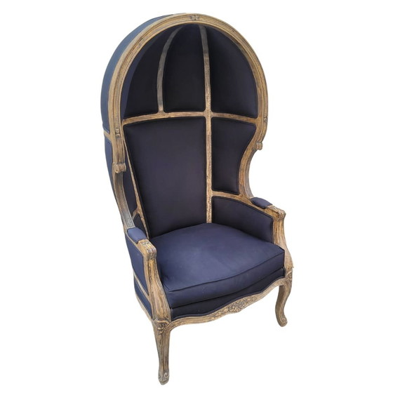 Carriage or Bonnet Chair, Louis XV Style, Washed Wood, Thread Upholstery, 21st Century – France Exceptional carriage or bonnet chair. The origins of this elegant piece date back to medieval England, although it was also widely used in France. Characteristically, it is a concave-shaped frame in washed wood, with a high, closed backrest, upright position, four legs and armrests. Elegant and balanced contrast of the wood with the anthracite grey thread upholstery, fully quilted. Delicate floral motifs carved into the valance. Its design adds classic elegance and enduring charm to any room. Carriage or Bonnet Chair Style: Louis XV Materials: Washed wood, anthracite grey thread upholstery Period: 21st Century Country of Origin: France Good condition according to its age and use Overall dimensions: 160 x 80 x 70 cm Seat height: 50 cm Shipping costs will be paid by the buyer, depending on the product's dimensions, weight, and destination. We will contact you to arrange the delivery and agree on a quote. Shipping costs include custom-made professional packaging and personalized shipping, with a tracking number and warranty.