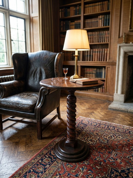 The highlight is the splendid central column with a twisted column (helix workmanship), entirely hand-carved, which rests on a solid circular stepped base. The ash grain is clearly visible and enhanced by the warm tone of the wood, making it perfect for both classic spaces and vintage/rustic corners.