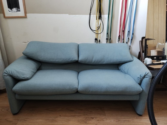 Imagine: a relaxing evening on this beautiful Cassina Maralunga 2-seater sofa. Upholstered in soft, blue wool, this sofa offers not only comfort but also a stylish look that fits perfectly into a modern interior.