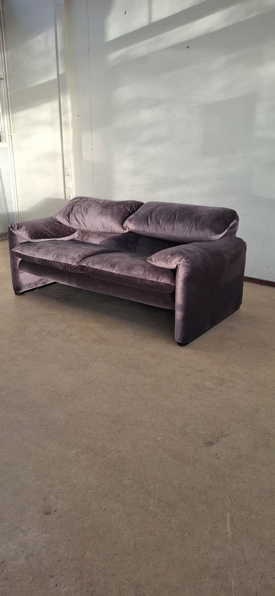 Meet the iconic Cassina Maralunga sofa, a real eye-catcher for your living room. This sofa exudes vintage charm with its rich purple velvet upholstery that is both stylish and comfortable. Perfect for a relaxing evening or impressing your guests.