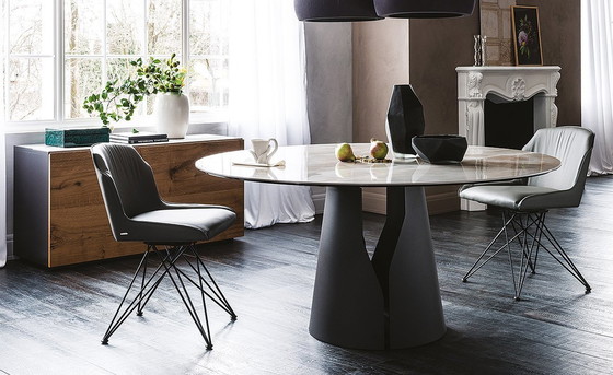 Cattelan Italia Giano Round Dining Table - Ø 140 cm x H: 75 cm - Color table top Golden Calacatta matt and color base in Bronze Embossed lacquered. Dining table for 4-6 people, about 3 years old and in new condition. Would also serve nicely as a meeting or conference table.