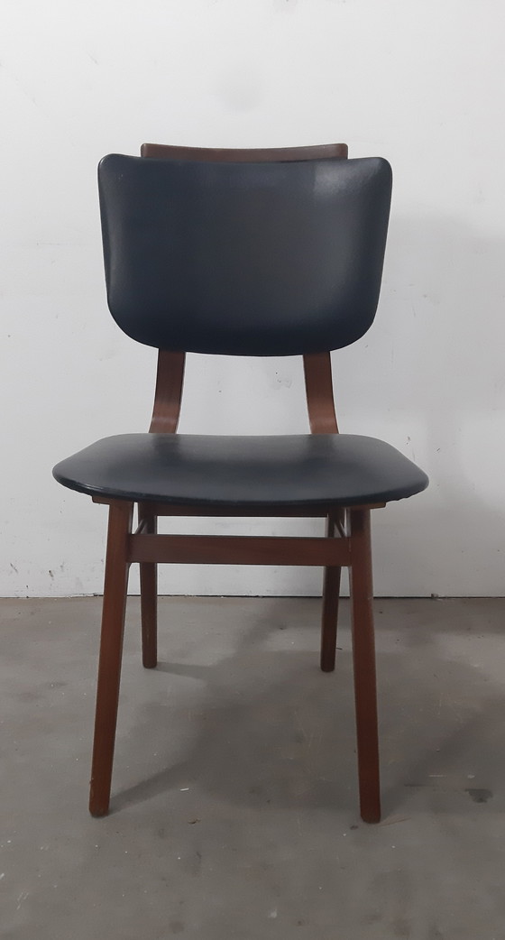 Experience the timeless elegance of the 1950s with this beautiful Cees Braakman chair, crafted from teak. This chair embodies the essence of Mid-Century Modern design and offers both style and comfort for your dining room. - Crafted from high-quality teak, known for its durability and rich color. - The seat and backrest are upholstered in black leatherette, creating a refined look. - Designed by renowned designer Cees Braakman, an icon in the Dutch design world. Add a touch of vintage charm to your interior with this unique chair. Contact us today for more information.