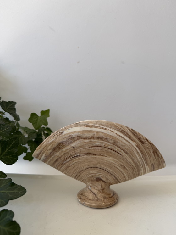 Very beautiful ceramic letter holder with a warm marble look in beige and brown tones. Semi-circular shape on a base, stands firmly and has that soft sheen. Simple but just a little different thanks to the mottled pattern. Q179