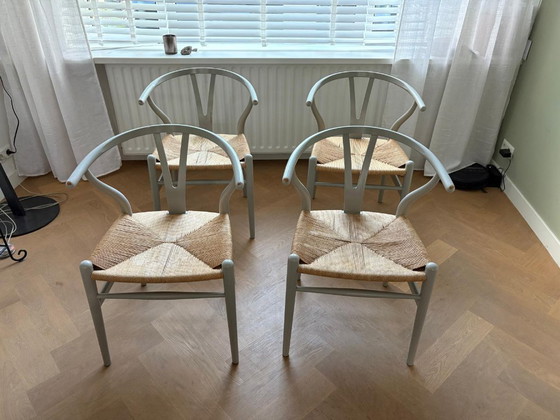 Hans J. Wegner Wishbone Chair. These soft grey Wishbone CH24 Color Chairs are made of FSC certified beech wood and were purchased on March 10, 2012 from Fabrieknl (now MORENTZ).