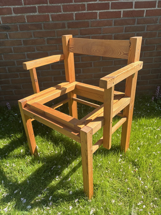 This wooden chair is a design heavily inspired by the famous Steltman chair by the Dutch architect and designer Gerrit Rietveld.