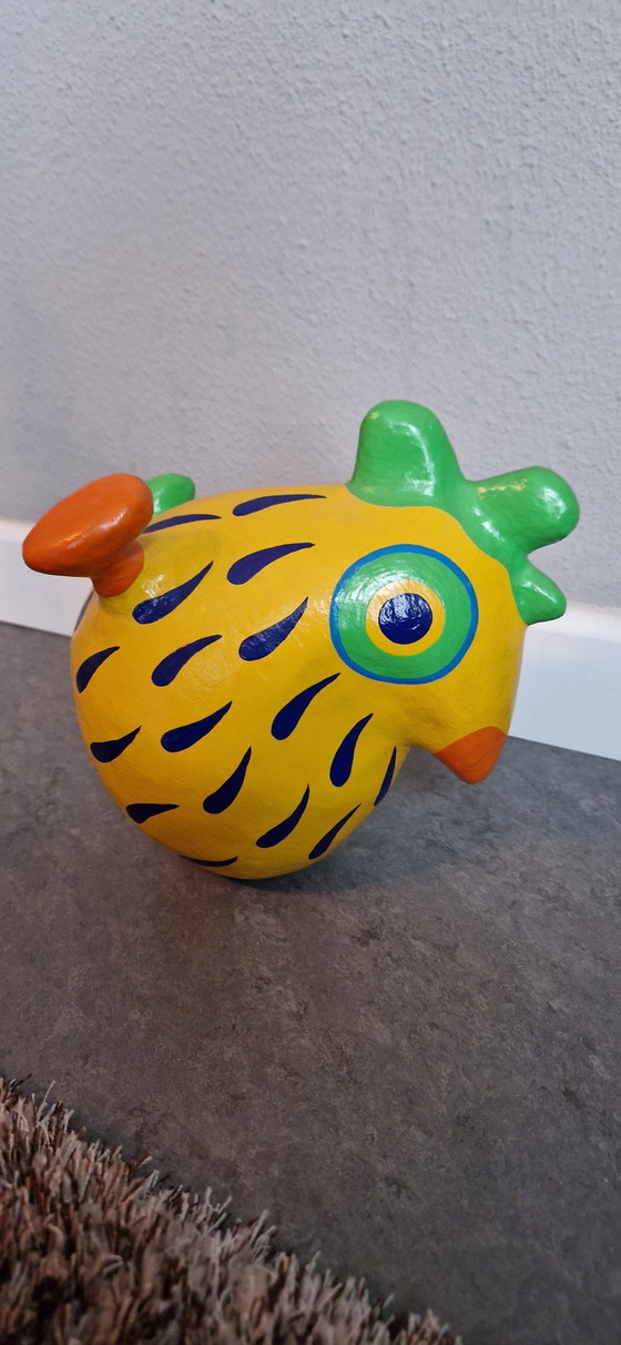 This vibrant chicken art piece adds a playful and colorful touch to any room. In perfect condition.