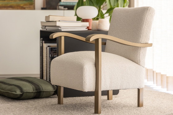 Children's armchair completely restored. In white teddy fabric, solid wood in bronze finish. With suspension in excellent condition.