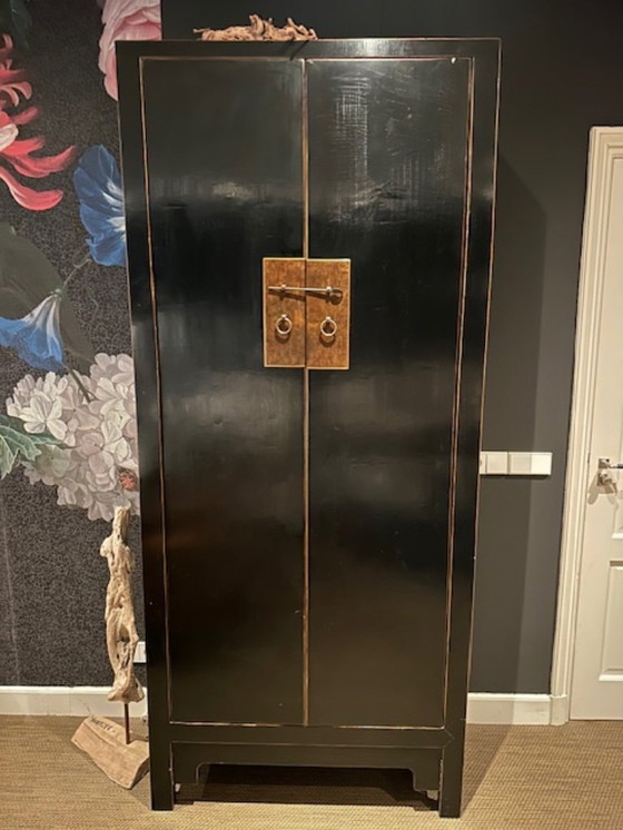 Step into a world of elegance with this stunning Chinese cabinet, a perfect blend of tradition and style. Its sleek black finish and traditional metal hardware make it a standout piece that can effortlessly elevate any room. Crafted from high-quality wood, this cabinet features a rich black lacquer finish that exudes sophistication and charm. The traditional Chinese metal hardware adds an authentic touch, making it not just a storage solution but a piece of art. With a spacious interior and multiple shelves, it offers versatile storage options for your treasures. Whether you're looking to add a touch of exotic charm or need a functional centerpiece, this cabinet is ready to transform your space. Don't miss the chance to own this beautiful piece that combines functionality with timeless style!