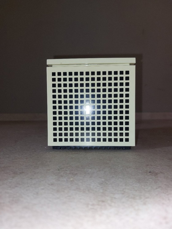 The 'grilled cube' table lamp by Cini&Nils, not silkscreened and therefore quite rare, is an example of modern and functional design. With its grid structure, it offers soft, pleasant lighting, perfect for contemporary spaces. Crafted from resin, this lamp combines aesthetics and durability. Ideal for adding a touch of elegance to any space.