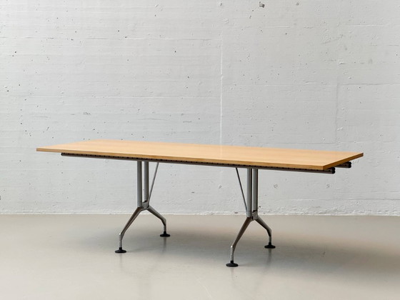 Conference table from the Ad Hoc series by Vitra, designed by Antonio Citterio. The table embodies a clear, functional design language and was developed specifically for modern offices and conference rooms.