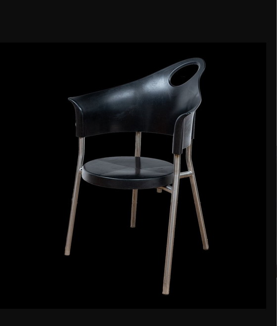 Experience the timeless elegance of the Cobra dining chairs, designed by the renowned Rob Eckhart in the 1990s. These chairs combine a futuristic design with functional simplicity, perfect for the modern dining room. The chairs are crafted from high-quality plastic and chrome-plated steel, ensuring a durable and stylish appearance. The unique design with a cut-out backrest offers not only comfort but also makes a visual statement in any room. Add a touch of design history to your interior with these iconic chairs.