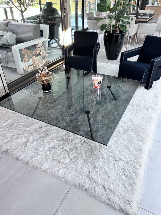 Beautiful, timeless coffee table by Beek, model Maupertuus. Top: 10mm tempered smoked glass gray.