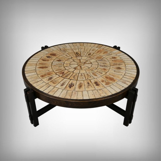 A superb round table by Roger Capron, the iconic Vallauris ceramicist, who collaborated with the finest artisans to bring his renowned "Les Herbiers" collection to life. This vintage piece embodies the perfect blend of artistic craftsmanship and a tribute to Mediterranean nature.
