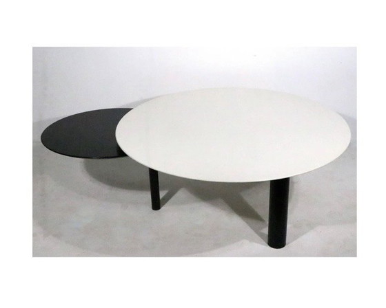 Coffee table with extendable black round top, Italian design