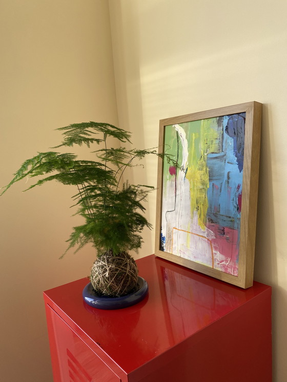 Colorful abstract painting, acrylic on canvas. Dimensions: 30 x 40 cm. The painting includes the frame. The hanging system is already on the back, making it easy to hang. A colorful addition to any interior!