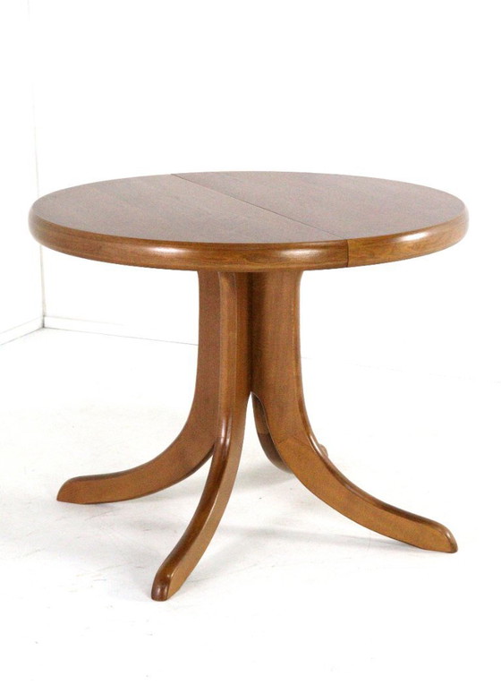 A beautiful, Danish-designed, round, and double-extendable vintage table: that's the "Mannheim" model.