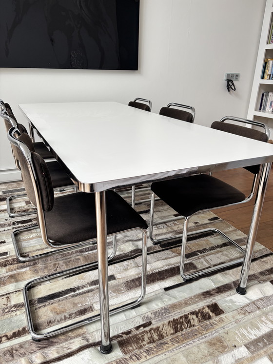 Complete Gispen designer dining set consisting of an original table and 6 matching chairs.