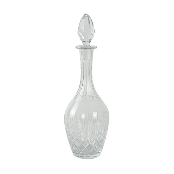 An elegant carafe made of clear, high-quality crystal glass, decorated with a classic, hand-cut diamond pattern. The slender neck transitions into a spherical body, and the whole is crowned with a matching, faceted drop-shaped stopper. Perfect for serving whisky, wine or liqueurs, as well as a decorative element for a classic or vintage-style table or sideboard.
