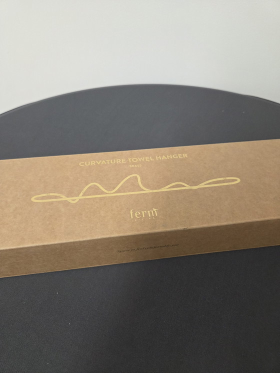 Complete your bathroom with this stylish Curvature towel holder from Ferm Living, new and in its original packaging. Made of brass, it exudes a luxurious and modern vibe that fits perfectly in any bathroom. The wavy design adds a playful element while remaining functional. Hang your towels in style and enjoy the refined finish that upgrades your space. New and ready to enhance your bathroom! Dimensions: W: 65.9 x H: 10.7 x D: 8.5cm