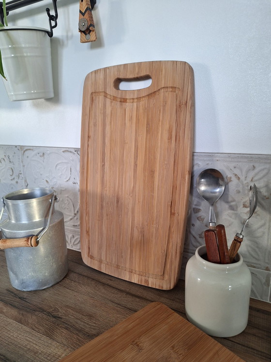 Solid wood cutting board. Item in excellent condition (no signs of use). Dimensions: Height 42.2 cm Width 24.2 cm Thickness 2 cm Careful shipment.