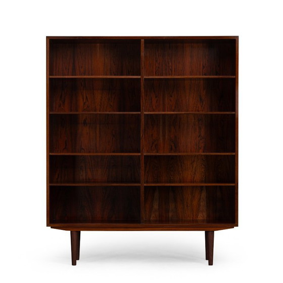 A beautiful Omann Jun Model 6 bookcase in rosewood. This Model 6 proudly carries on the legacy of Danish design, known for its clean lines, minimalist aesthetic, and exceptional craftsmanship. Inspired by the mid-century modern movement, this bookcase captures the essence of the Scandinavian design philosophy, where simplicity and functionality reign supreme. And 60 years later, this bookcase is still in excellent vintage condition! The brand sticker is even still attached!
