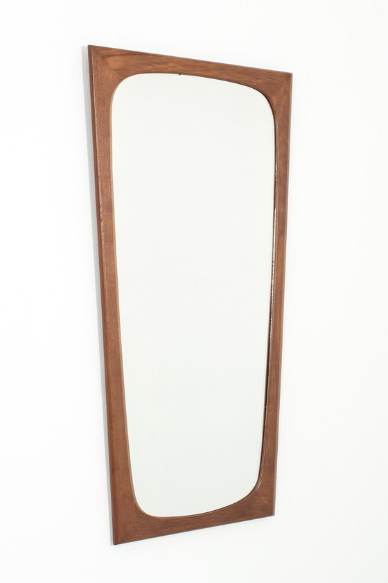 Danish vintage mirror in a beautiful teak frame. In good vintage condition. Measurements: H. 70.5 cm; W. 39 cm; D. 1.2 cm.