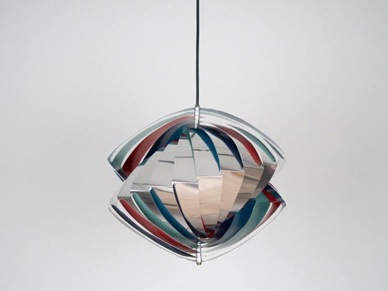 Iconic lamp Konkylie, by iconic Danish designer Louis Weisdorf. This is a model that is hard to find on the secondary market. The Turbo lamp was designed by Louis Weisdorf in 1963. It was designed with a simple form, but with a complex structure. It combines a sense of lightness and strength into a beautiful structural whole. The outer basket of the lamp consists of 12 identical panels, which together create the shape of a shell. This is an original model manufactured by Lyfa. The lamps were once a permanent part of the exhibition at the Danish amusement park Tivoli.