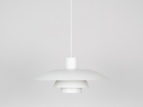 The PH 4/3 lamp is an absolute classic, designed by the renowned Danish designer and architect Poul Henningsen. It has been manufactured by Louis Poulsen since 1966. The lamp's form is based on the same principle of a reflective system as other three-shaded lamps, including the PH 5 and PH Charlottenborg lamps. This system directs light not only downward but also sideways, illuminating the lamp itself. Thanks to its design, the PH 4/3 produces a diffused, glare-free light with a warm tone.