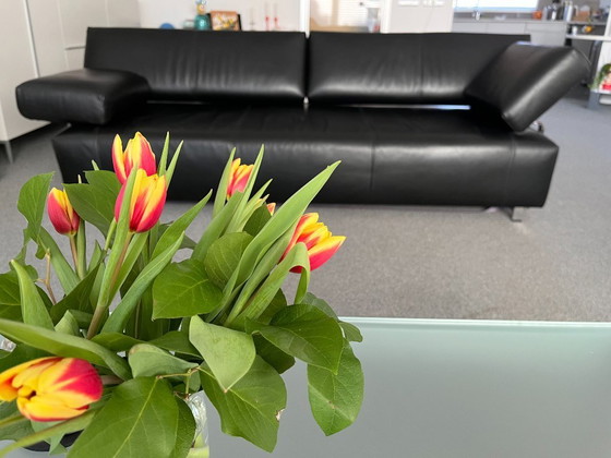Discover the luxury and versatility of the De Sede FSM two-seater sofa, a masterpiece of Swiss quality. This sofa is upholstered in high-quality black leather, which not only provides an elegant appearance but also ensures durability and comfort. The adjustable design offers flexibility, allowing you to adapt the seating position to your personal preferences and even turn it into a bed. It is also perfect for placement in the middle of the room.