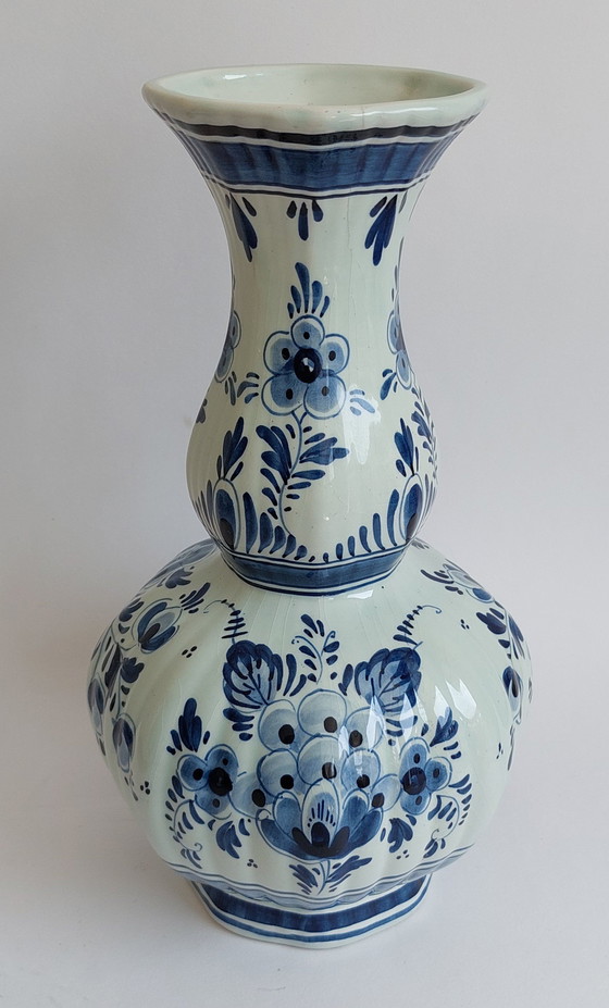 Dutch Delft Blue Ceramic Vase. Bulbous floral Blue & White handpainted vase.