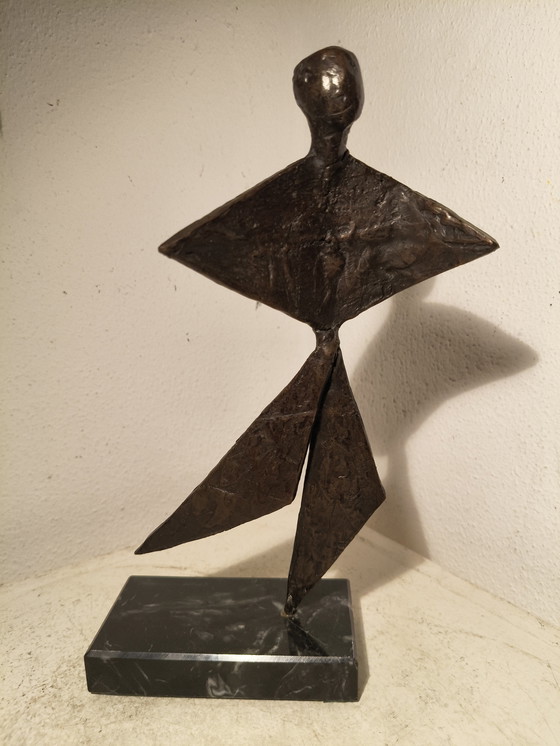 This beautiful bronze sculpture, set on an elegant marble base, embodies the expressive power of cubism. The abstract shapes and clean lines give the piece a modern look, perfect for contemporary art lovers. The combination of bronze and marble creates a timeless elegance that will complement any interior. Add a touch of artistic flair to your space with this unique work of art.