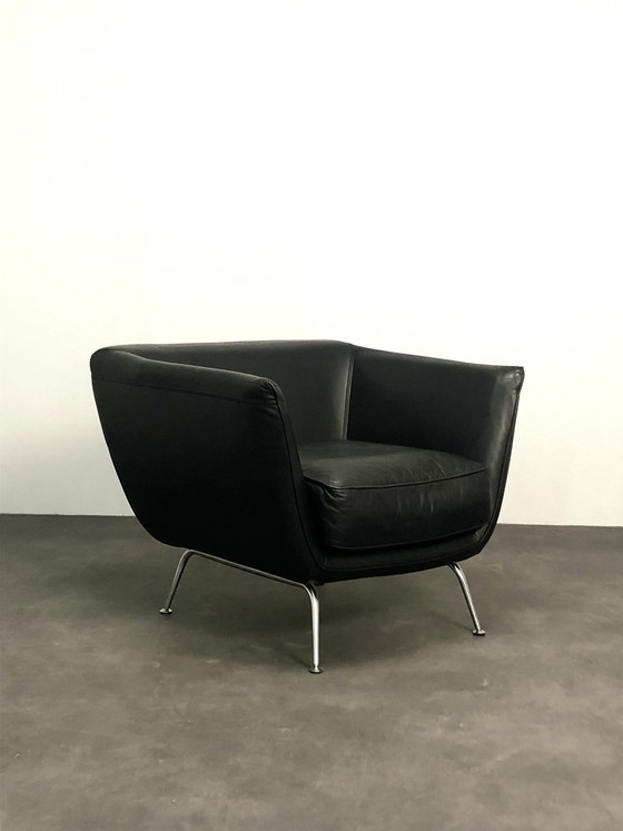 Black with chrome legs in the finest leather! And with a wonderfully thick, soft cushion.