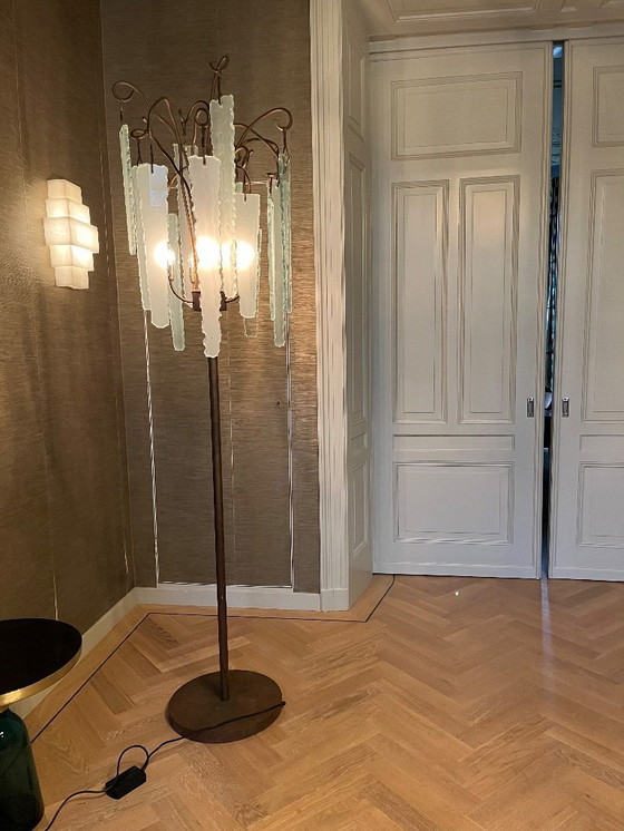 This beautiful standing lamp from Brand van Egmond's "Behind the Frosted Glass" series is a real eye-catcher in your interior. With its unique combination of frosted and clear glass icicles, this lamp creates an atmospheric interplay of light that brings any room to life. It's not just a functional light source but also a work of art in its own right, adding an artistic touch to your interior.