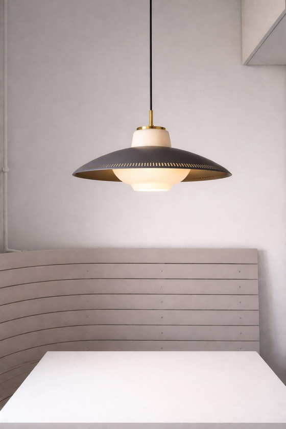 I'm selling my beloved Svend Aage Warm Nordic Opal Shade Pendant, which enhances any room with its timeless design. The lamp impresses with its elegant two-tone effect: A matte, gray outer shade with a fine ribbing encloses a white opal inner shade, providing warm, glare-free light – perfect for cozy evenings at the dining table or in the living room.