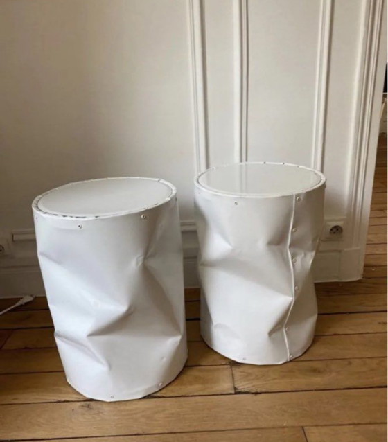 Vintage 1980s White Metal Side Tables Set of 2 white metal side tables. Height 41 cm, diameter 30 cm